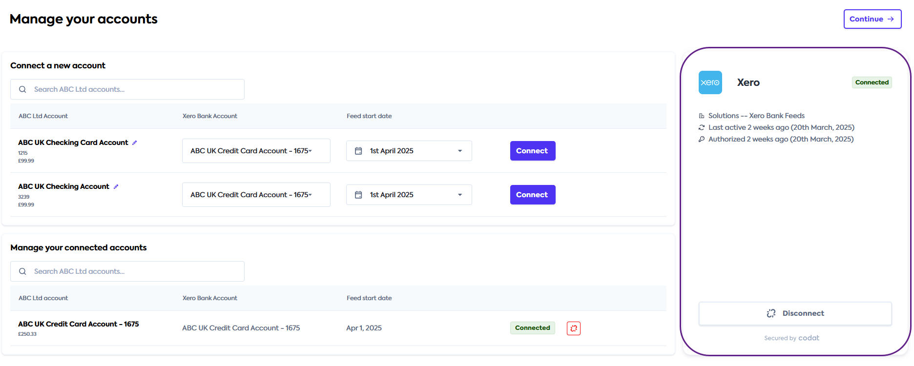 We have added a connectionConnection A link between a Codat company and a data source (like an accounting platform). Each connection represents authorized access to pull or push data from that platform. management component to the Bank FeedsBank Feeds A Codat product that enables automatic synchronization of bank transaction data into a company's accounting software. account mapping user interface.